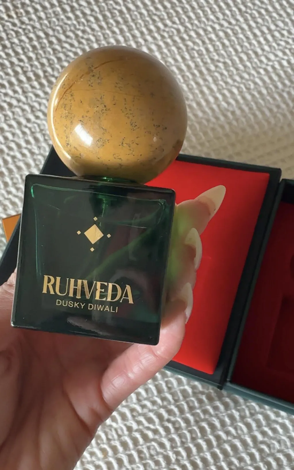 Dusky Diwali is a warm, luminous scent that feels like a celebration– rich with sweetness, spice, and warmth. It opens with the glow of saffron, melts into the nutty richness of salted pistachios, and finishes with the gentle warmth of sandalwood incense that lingers softly on the skin.